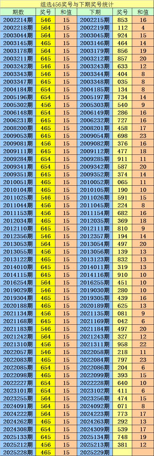 第2025228期3D奖号组选为:456,历史上该号码组选出现57次,下期号码分离为:853、112、924、464、856、857、633、404、035、134、734、540、286、727、458、698、376、477、911、587、374、065、190、591、224、682、369、810、194、497、139、832、319、910、451、280、439、625、081、042、497、327、958、218、797、204、393、640、411、474、071、773、292、539、748、381。
