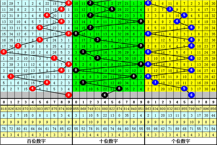 其中,号码0出现13次,1出现19次,2出现16次,3出现19次,4出现24次,5出现13次,6出现11次,7出现19次,8出现16次,9出现18次,奇偶比为88:80,偶数走冷,本期防备偶数反弹,奇偶比参考1:2;大小比为:77:91,大号出现频次较低,本期注弘远号回补。
